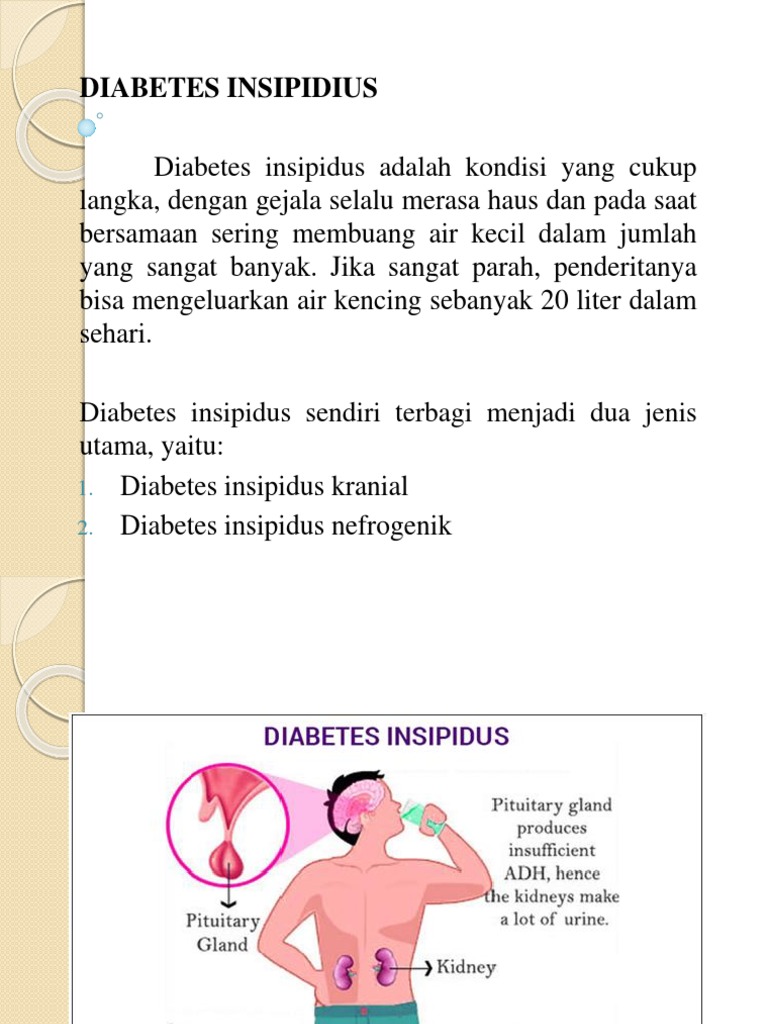 Diabetis Insipidus 1 Pengertian A Diabetes Insipidus Adalah Pengeluaran Cairan Dari Tubuh Dalam Jumlah Yang Banyak Yang Disebabkan Oleh Dua Hal Gagalnya Ppt Download